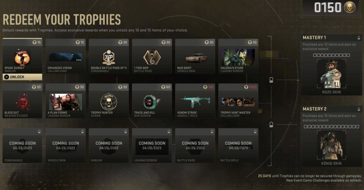 Every participant will lose a trophy coin every time they are eliminated in any mode during this brief event. These awards are yours if you kill enough enemies or complete missions like opening supply crates. Whether playing multiplayer, battle royale, or DMZ, you can collect the trophies differently.